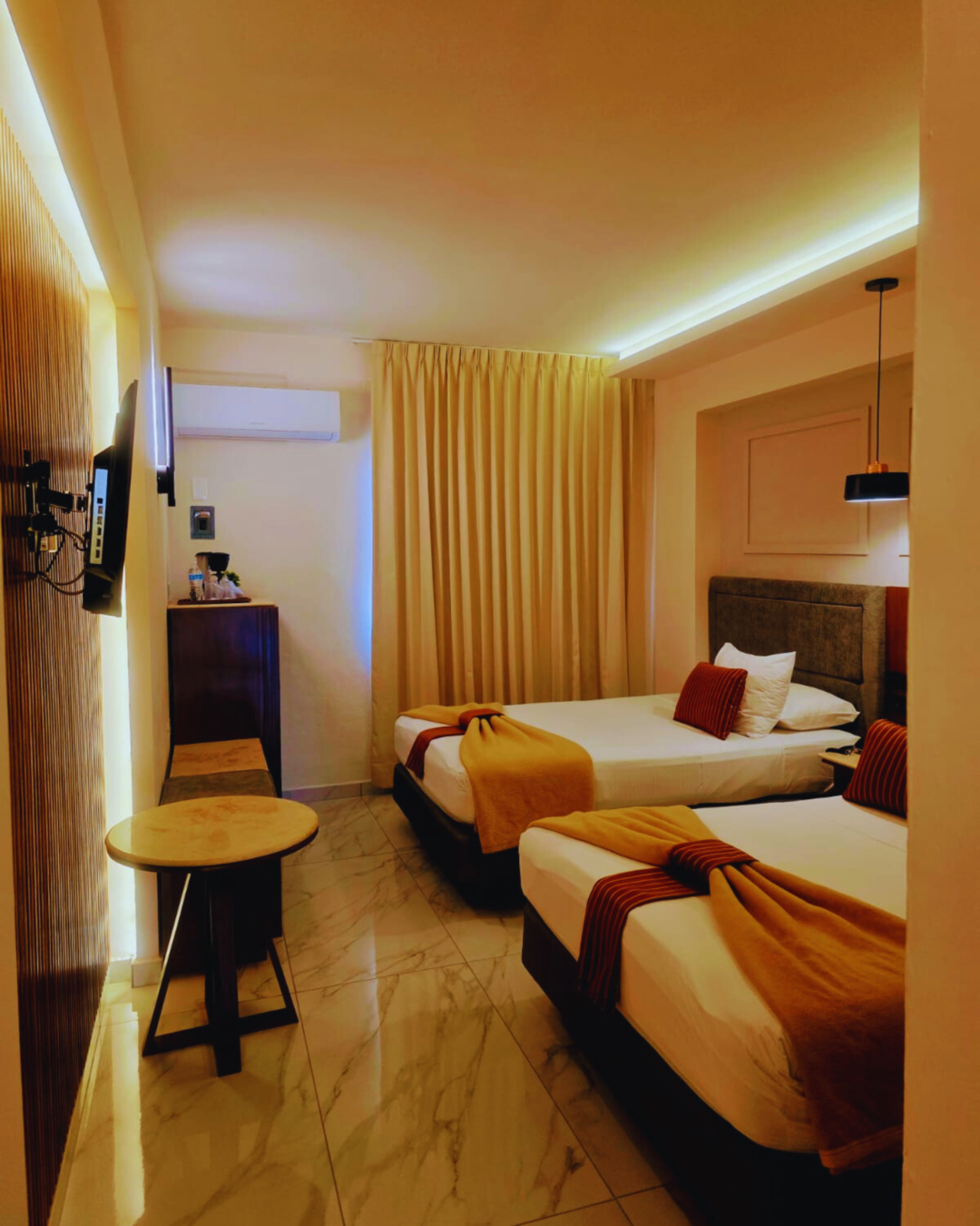 Perfecta para familias o grupos, nuestra Habitación Ejecutiva cuenta con dos cómodas camas matrimoniales en un espacio amplio y funcional.