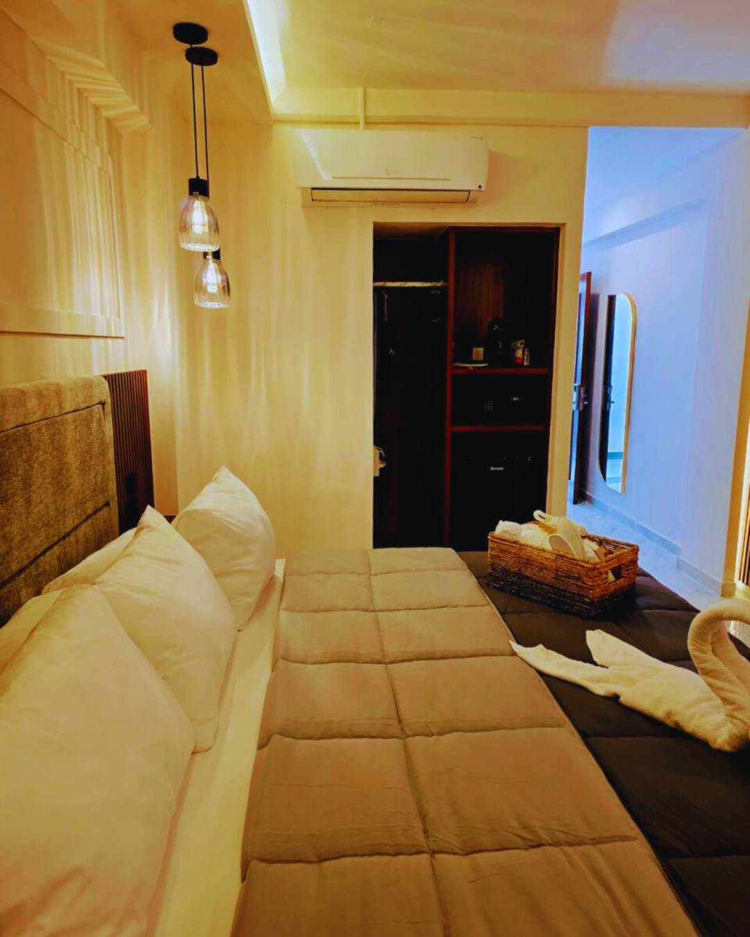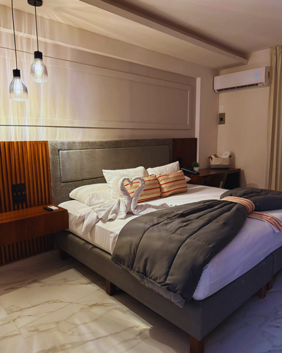 Disfruta de un ambiente tranquilo, iluminación cálida y mobiliario funcional que te permitirá descansar plenamente después de un día de actividades.