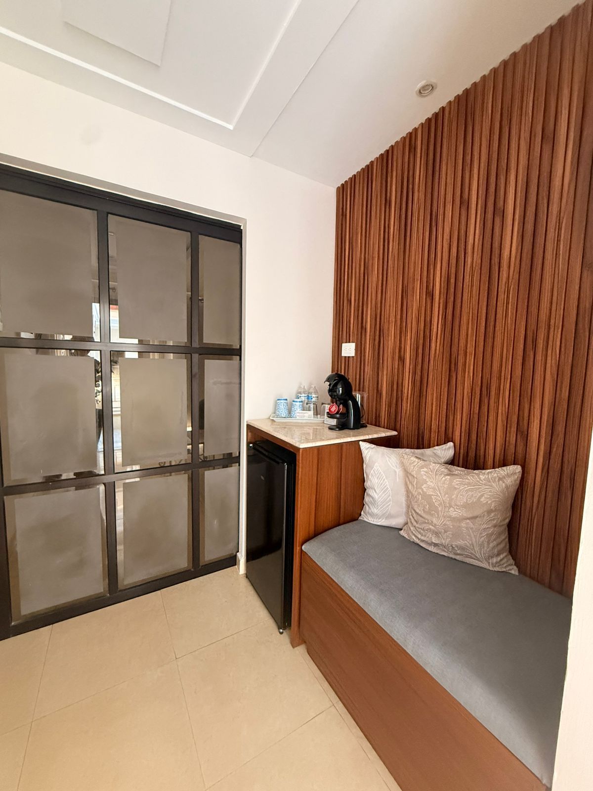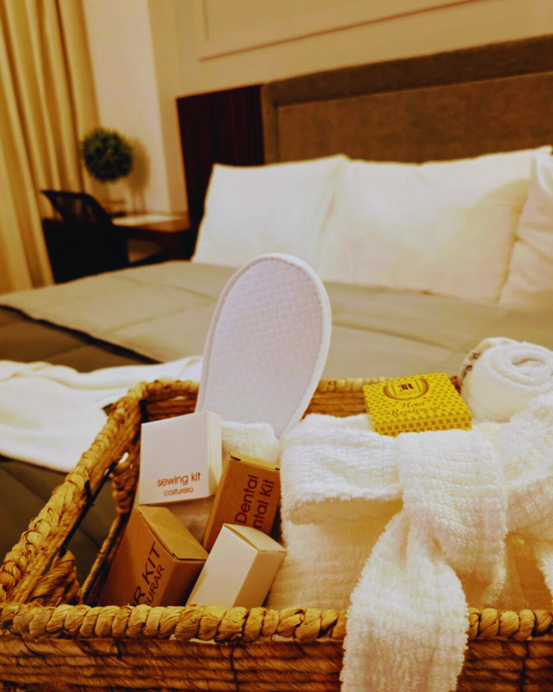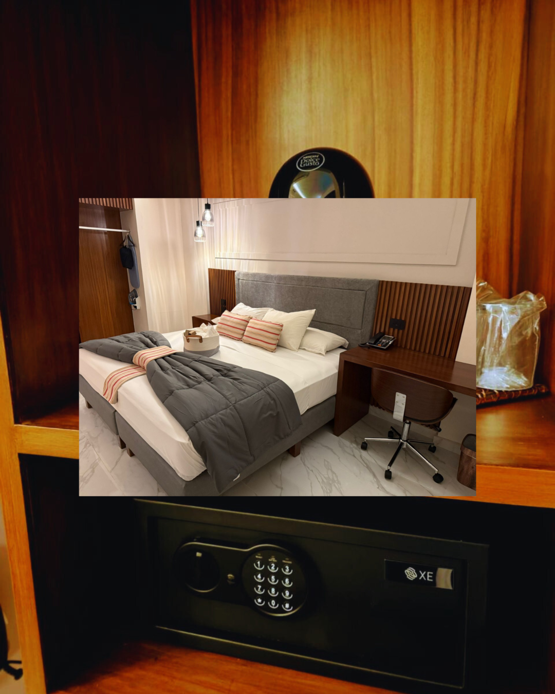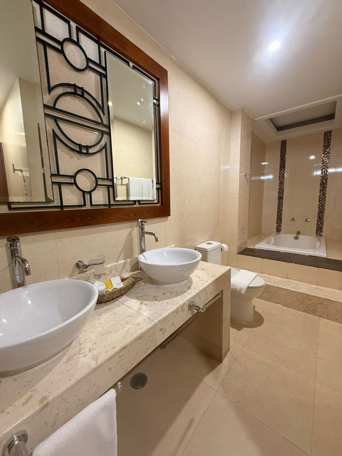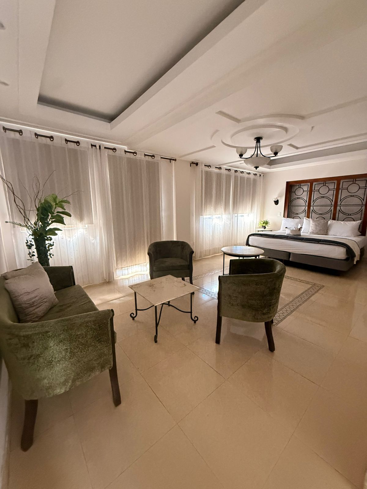 Nuestra Habitación Suite ofrece un espacio amplio, sofisticado y lleno de confort, ideal para quienes buscan una experiencia superior de descanso. Cuenta con cama king size, sala de estar, terraza privada y una distribución pensada para brindar privacidad y bienestar. El baño está equipado con doble lavabo y tina de hidromasaje, perfectos para relajarse y desconectarse. Su diseño armonioso, la iluminación natural y los detalles cuidadosamente seleccionados crean un ambiente exclusivo que invita al descanso. Entre sus amenidades se encuentran cafetera de cápsulas, bata y pantuflas, plancha, frigobar, caja de seguridad, doble aire acondicionado, televisión de 55 pulgadas, Wi-Fi, teléfono y servicio de limpieza diario. La Habitación Suite es perfecta para estancias románticas, celebraciones especiales o para quienes buscan mayor amplitud, comodidad y privacidad.
